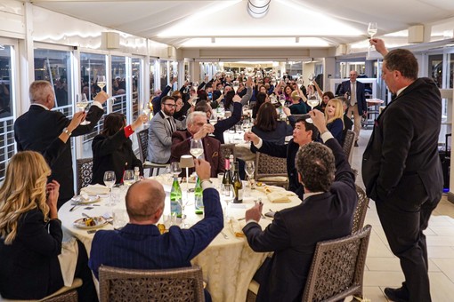 Tra i protagonisti della serata, anche il responsabile ASPI per le province di Imperia e Savona, Stefano Semeria, e Claudio Maspes, giunto da Milano per l’occasione. La cena, preceduta da un aperitivo a buffet, ha alternato piatti d’autore a un’attenta selezione di vini, liquori e cocktail, dando vita a una combinazione di enogastronomia. L’atmosfera è quella delle grandi occasioni, ma con una nota di convivialità.