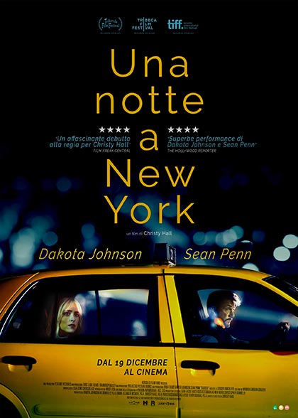 - UNA NOTTE A NEW YORK – ore 21.30 – di Christy Hall - con Dakota Johnson, Sean Penn, Marcos A. Gonzalez - Drammatico – “È sera e fa buio all'aeroporto JFK di New York. Una giovane donna, appena sbarcata, sale su un taxi in direzione di Manhattan. Il tassista prova a fare conversazione e a lei sembra non disturbare l'idea di scambiare qualche parola, nonostante Clark (è questo il nome di lui) non abbia peli sulla lingua. Lungo il tragitto, allungato da un incidente che blocca temporaneamente il traffico, il dialogo tra i due si fa più personale e l'uomo e la donna cominciano a rivelarsi cose che non hanno mai detto a nessun altro...”