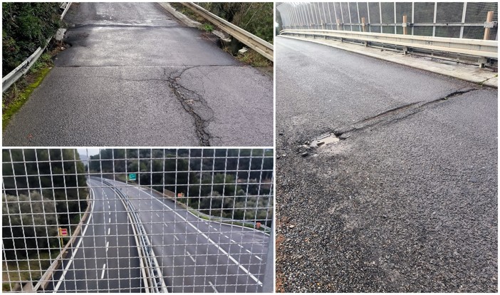 “In primo piano –scrive Massimo Bernardis - si notano ampie aree di asfalto ammalorato, con tratti della strada gravemente danneggiati. Le condizioni del manto stradale sono particolarmente preoccupanti: numerosi punti mostrano crepe e buche, che non solo rendono difficile la circolazione, ma aumentano il rischio di incidenti, soprattutto per i veicoli a bassa velocità o per i motociclisti. La situazione è ulteriormente aggravata dalle infiltrazioni d'acqua che, nel corso del tempo, hanno compromesso l'integrità dei ferri del cavalcavia, minacciando la stabilità della struttura stessa”.