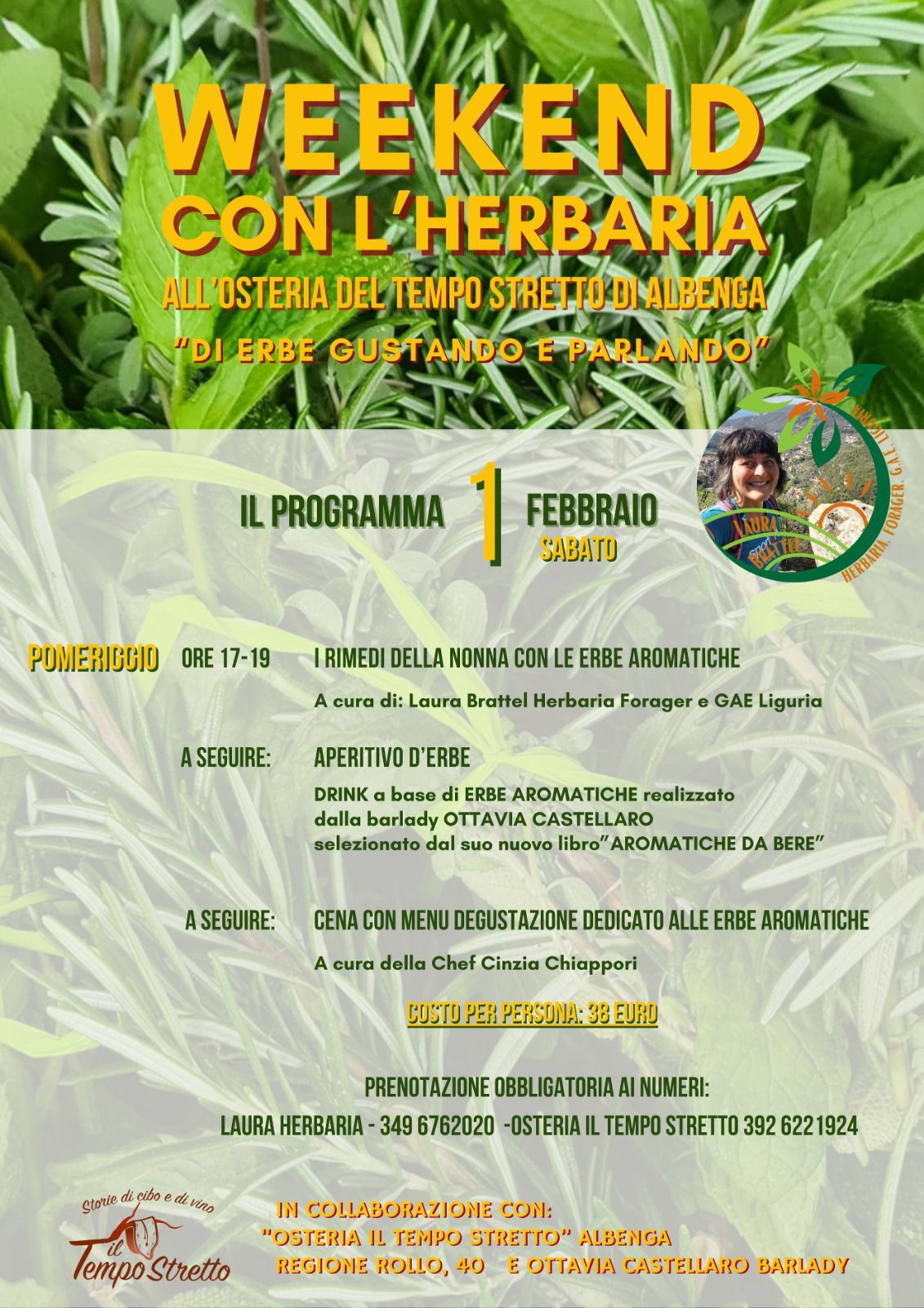 L'Osteria del Tempo Stretto di Albenga vi invita a immergervi nel mondo delle erbe spontanee con un weekend indimenticabile. Nei giorni 1 e 2 febbraio, l'Herbaria Forager e GAE Liguria Laura Brattel, insieme al team dell'Osteria, vi guiderà alla scoperta delle proprietà benefiche e dei mille usi delle erbe spontanee.
