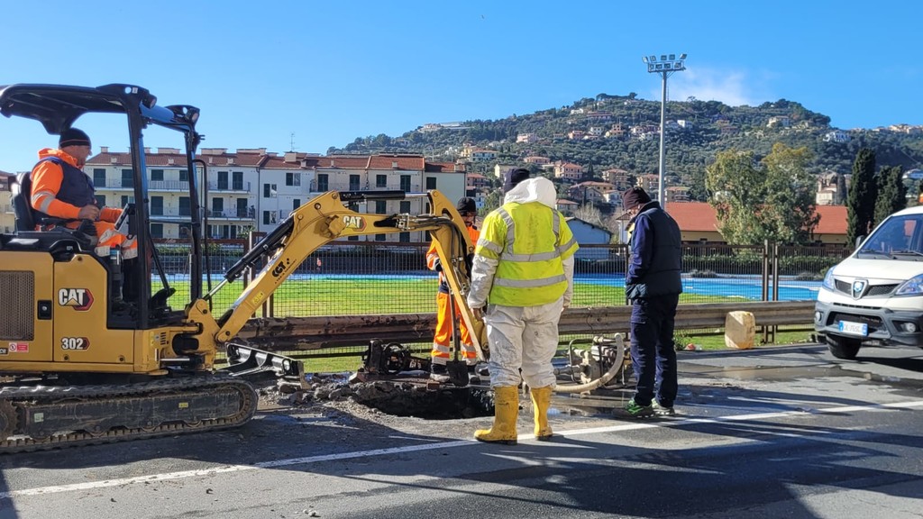 Guasto all'acquedotto in via Littardi a Imperia, allagamenti e disagi