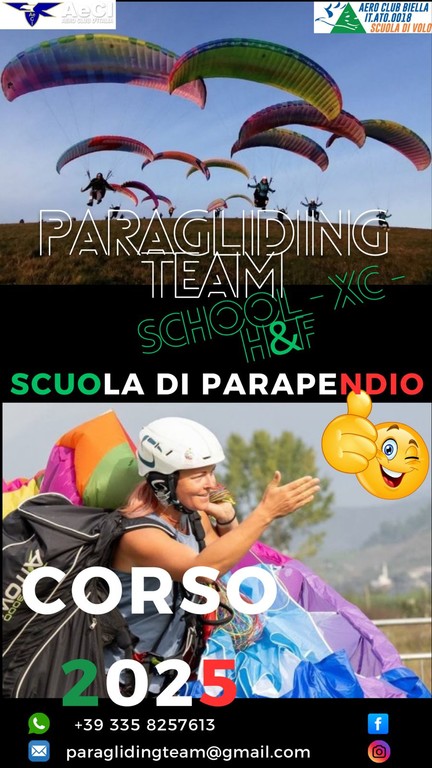 L’Aero Club Biella - Sezione VDS (Volo Libero) apre ufficialmente le iscrizioni al nuovo Corso di Parapendio 2025, rivolto a chi sogna di volare e vivere la montagna anche dall’alto.