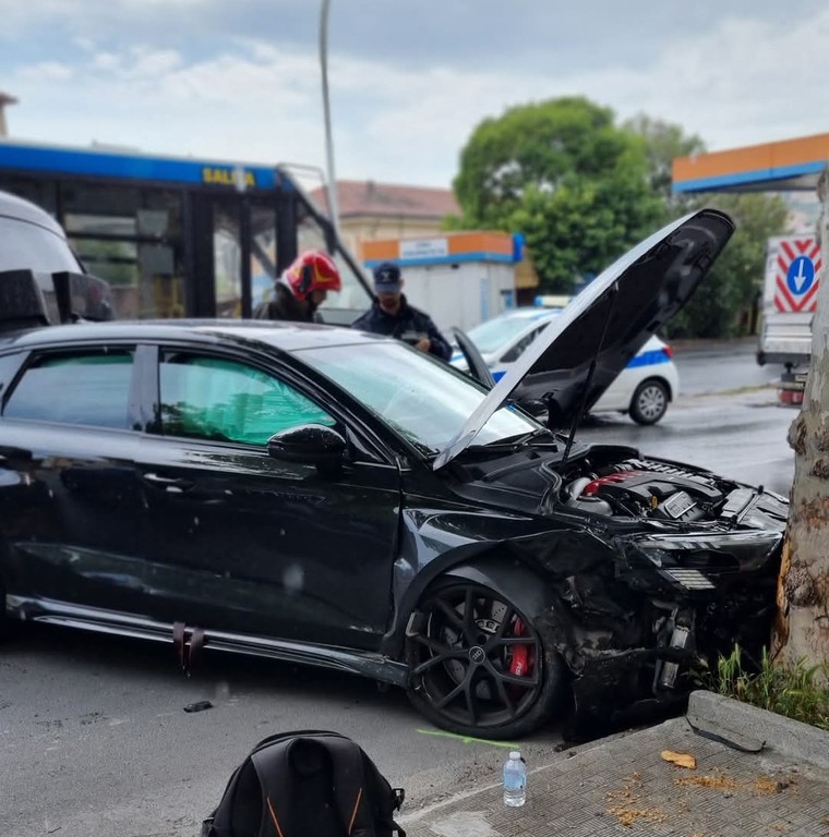 Imperia, incidente in via Garessio: auto si scontra contro un albero