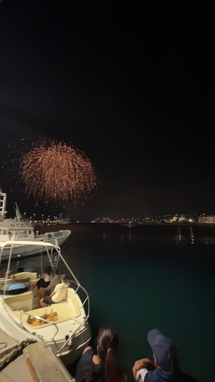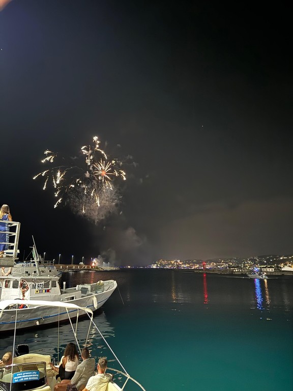 Riflessi sul mare, le coreografie hanno animato il cielo notturno con sobrietà e bellezza, chiudendo la giornata di festa con un momento condiviso e sentito. L’appuntamento con i fuochi d’artificio si conferma così parte integrante della tradizione locale, capace di rinnovare ogni anno un senso di comunità e appartenenza.