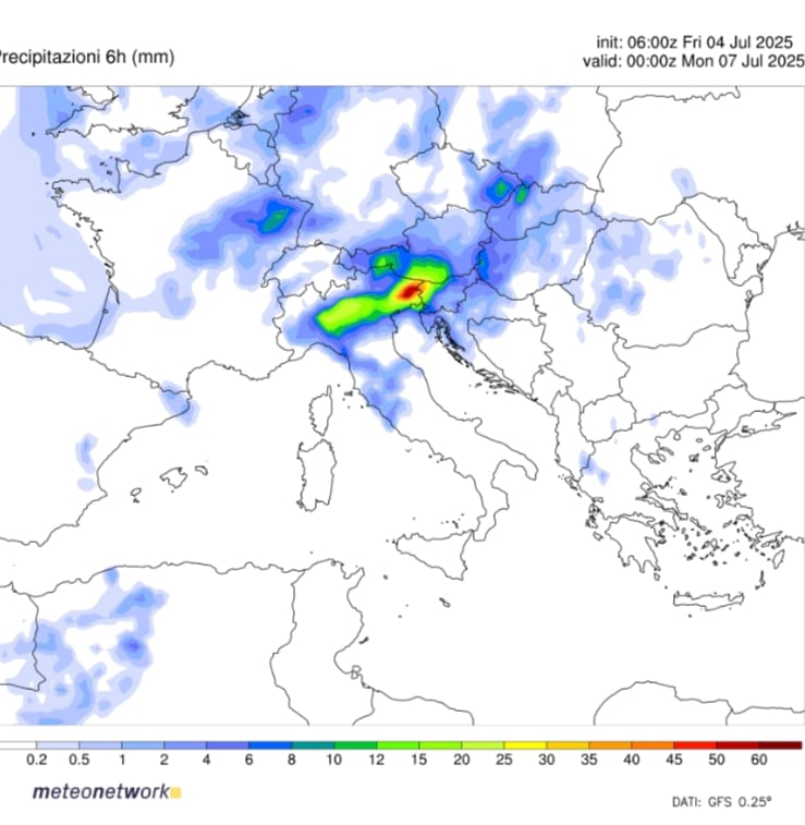 Maggiori chance per i settori centri orientali della Regione. Tra le aree più a rischio Lombardia, Trentino, Friuli, con estensione anche ai settori centrali Emilia Romagna e Toscana. Le caratteristiche saranno le solite con nubifragi e downburst e quantitativi di pioggia importanti anche sino ai 100 mm. Preciso che per quanto concerne il Sud nulla cambierà. La situazione attuale persisterà con condizioni di fortissimo disagio fisiologico e clima insopportabile. Di riflesso si avrà qualche beneficio nella seconda parte della settimana.