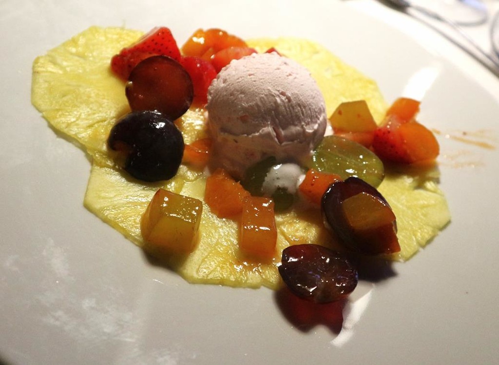 · Carpaccio di frutta fresca con gelato al petalo di Rosa