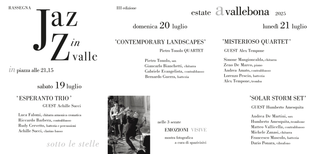 21.15. Rassegna Jazz in Valle in Piazza dell'Oratorio, fino al 21 luglio (locandina)