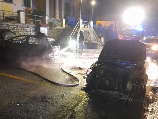 Due auto in fiamme nella notte a Pornassio davanti al Comune (foto)