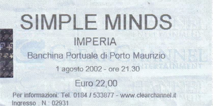 Attesi a Imperia migliaia di fans dal Savonese e da Genova, ma anche dal basso Piemonte e dalla vicina Francia. I Simple Minds saranno alla Marina per le prove del suono a metà pomeriggio. Il loro quartier generale è fissato all'Hotel Miramare di viale Matteotti a Imperia. Il cachet si aggira intorno ai 35 mila euro. Il gruppo approda a Imperia alla fine di un tour di sette mesi, tra cui anchee diverse tappe negli Stati Uniti. In Italia si sono esibiti a Taormina (26 luglio), Roma (29 luglio) e Fano, 30 luglio. A Taormina la partenza è stata con New Gold dream, seguita da Speed your love.