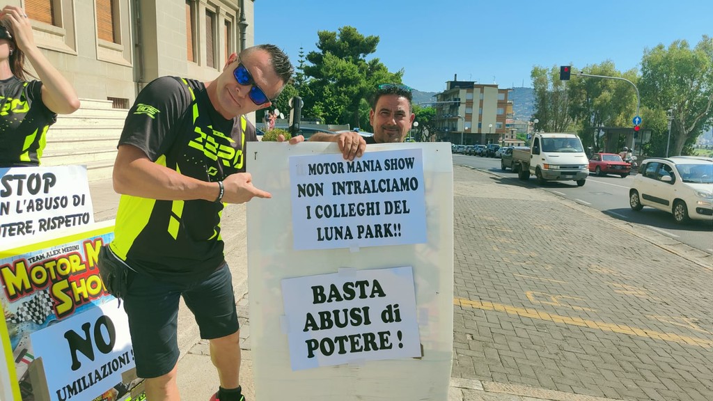 Protesta stamattina davanti al Comune di Imperia, dove titolari e maestranze dello spettacolo viaggiante Motor Mania Show hanno manifestato contro quella che definiscono "una decisione incomprensibile della giunta".