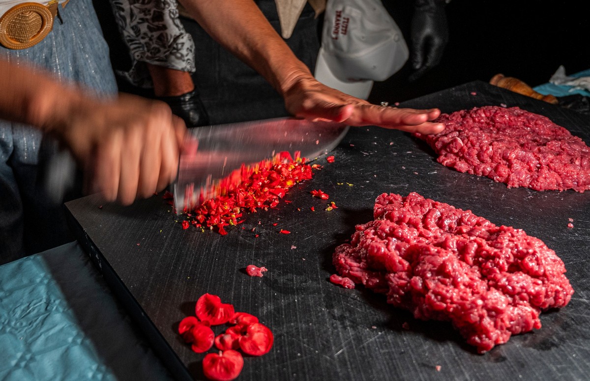 Il momento di “show gastronomico” della serata ha avuto come protagonista Dario Perucca, fondatore del Campionato nazionale di Battuta al coltello di Trinità (12ª edizione prevista per domenica 30 novembre) e presidente della Confraternita della Battuta al coltello.