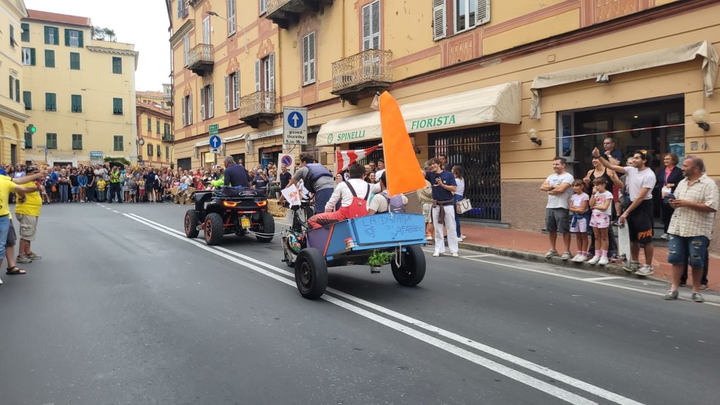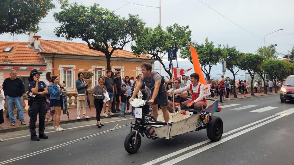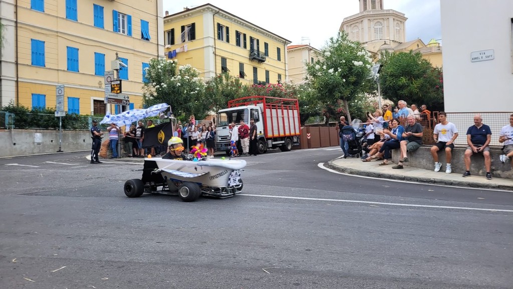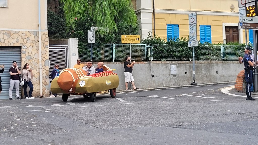 Organizzata dai Goliardi Imperiesi, con l'eccezionale regia di Yari Alassio l’edizione di quest’anno ha avuto un significato speciale: è stata dedicata alla memoria di Mauro Feola, indimenticato protagonista della vita cittadina e spirito goliardico per eccellenza. A lui è stato tributato un omaggio carico di affetto e sorrisi, proprio nel segno di quella leggerezza che tanto amava. Tra carrette improbabili, travestimenti strampalati e un pubblico partecipe come non mai, l’atmosfera era elettrica. Le squadre, composte da giovani e meno giovani, si sono sfidate su veicoli costruiti a mano, senza motore, spinti solo dalla forza di gravità e da una buona dose di coraggio (o incoscienza). E se la velocità contava, lo spirito della giornata premiava soprattutto l’originalità.