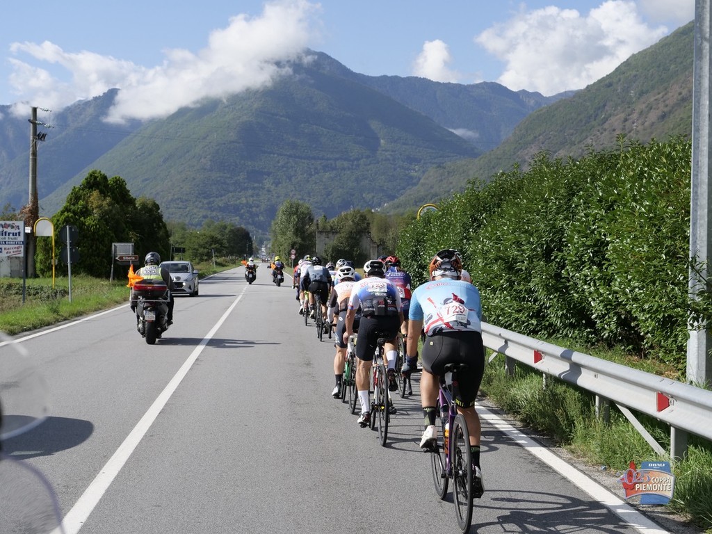 La corsa ha poi attraversato Piedimulera, prima dell’inversione e della lunga salita verso l’arrivo. La gara si è accesa a Premia, dove si è formato un primo gruppetto in fuga con Massimiliano Barbero Piantino (n. 110), Aldo Barone (n. 241), Bruno Zanetti (n. 115) e Fabio Barbieri (n. 259)