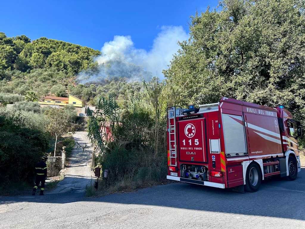 Incendio boschivo a Diano Calderina: fiamme in espansione