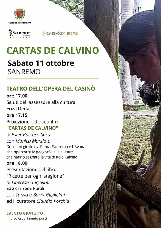 Alle 17.15 verrà proiettato il docufilm “Cartas de Calvino” della regista Esther Barroso Sosa, con la partecipazione dell’attrice e cantante Monica Marziota. Un viaggio suggestivo attraverso tre città – Sanremo, L’Avana e Roma – per raccontare le radici, i paesaggi e le atmosfere che hanno segnato la vita di Italo Calvino. In questo percorso, la figura di Libereso ritorna come simbolo dell’infanzia dello scrittore e del suo amore precoce per la natura. Tra testimonianze, ricostruzioni e una colonna sonora evocativa, il film diventa un tributo intenso e poetico al legame tra Calvino e il suo giardiniere (durata: 47 minuti)