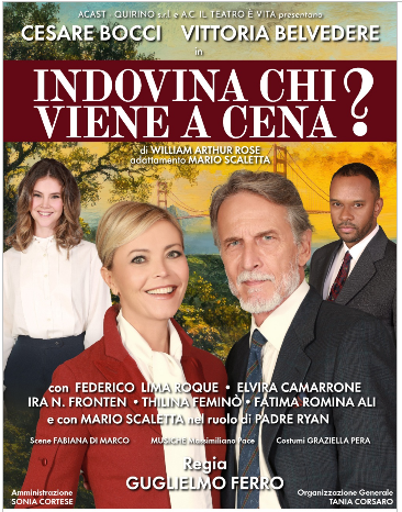 Guglielmo Ferro riporta in scena la stupenda commedia che fu interpretata (al cinema) dai due mostri sacri Katharine Hepburn e Spencer Tracy. Il tema, quello di un matrimonio misto, allora fece scalpore nell’America di fine anni ’60, ma oggi è più che mai di attualità in una società sempre più multietnica. Il soggetto di William Arthur Rose ha quasi mezzo secolo, ma anche grazie all’adattamento di Mario Scaletta si presenta come un testo fresco e attualissimo. “Quando mi hanno proposto questo lavoro ne sono subito stato entusiasta – ha detto Guglielmo Ferro. Si tratta di un testo brillante, che però trasmette un messaggio a forte connotazione sociale. L’adattamento di Scaletta ha inoltre sfrondato tutta una parte strettamente legata agli anni ’60, per farne un testo estremamente attuale, anche nel linguaggio più crudo e diretto. Si parla dunque di differenze e di comprensione, termine, quest’ultimo, che preferiamo a quello più restrittivo di tolleranza”.