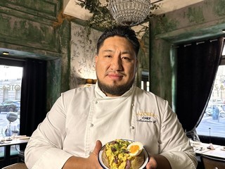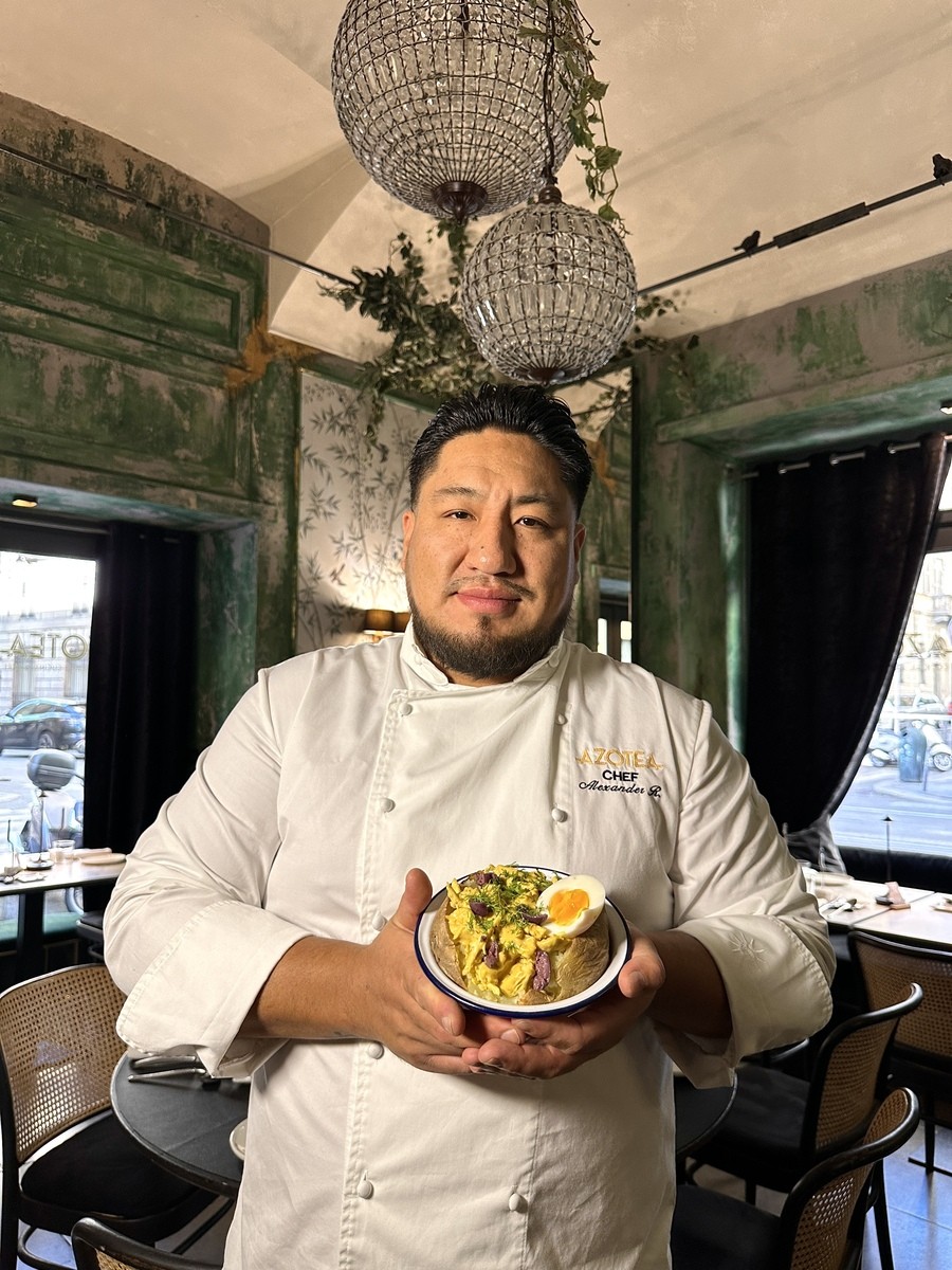 Azotea – Aji de gallina nikkei con pollo, salsa ocopa, coriandolo, olive e uova