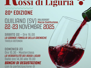 Nel weekend del 22 e 23 novembre la località della cintura savonese ospiterà l’ormai tradizionale evento celebrativo dei vini rossi e rosati di tutta la regione, giunto alla sua ventesima edizione, per la prima volta su due giorni. Sabato si terrà una tavola rotonda dedicata al vitigno della Granaccia, con esperti e addetti ai lavori in arrivo anche da altre regioni. Domenica in programma una Masterclass e la maxidegustazione con le etichette di oltre 60 cantine, da tutta la Liguria. Numerose le iniziative collaterali, a partire dai giorni precedenti, con il coinvolgimento delle attività commerciali. Spazio alla promozione del territorio. L’organizzazione è curata dal Comune e dalla rete di imprese Vite in Riviera.