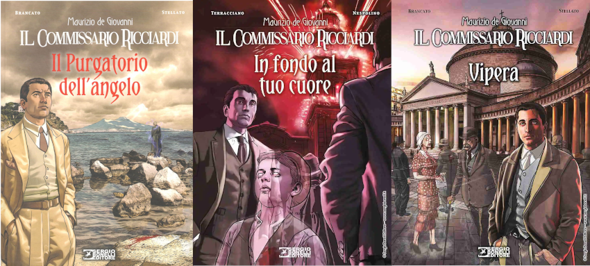 La prima trasposizione a fumetti di un romanzo di Ricciardi risale addirittura al 2010. Il graphic novel, edito da Cagliostro E-Press, si intitolava “Mammarella. Una storia a fumetti del commissario Ricciardi”, testi di Alessandro Di Virgilio e dello stesso De Giovanni, disegni di Claudio Valente.