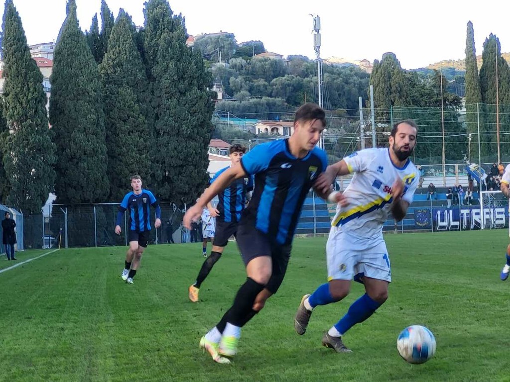La Cairese era rimasta in dieci proprio negli ultimi minuti, poco prima del gol imperiese, per il doppio giallo rifilato a capitan Boveri che ha dovuto così assistere fuori dal rettangolo verde al ko.