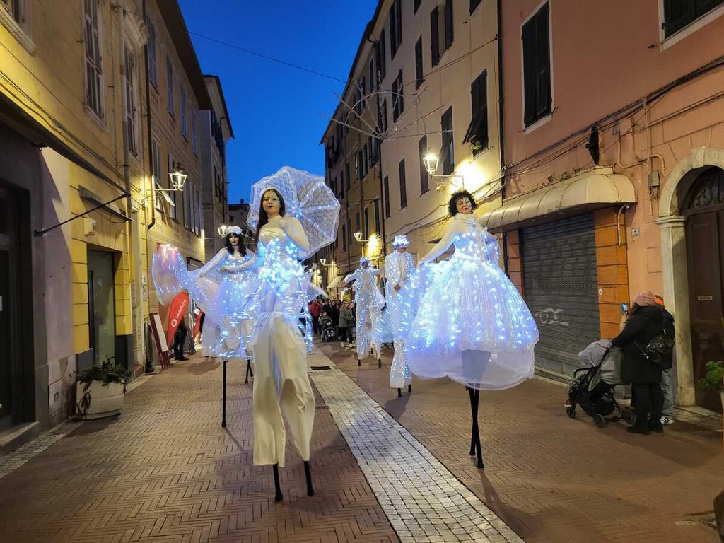 Fin dal tardo pomeriggio, a partire dalle 17, le vie commerciali del centro di Oneglia si sono trasformate in un vivace palcoscenico a cielo aperto: spettacolari installazioni luminose, sfilate itineranti, performance musicali e intrattenimenti dedicati ai più piccoli hanno animato il cuore cittadino.