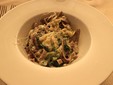 Il secondo piatto ha celebrato i sapori intensi dell’alta quota: il Ganassino, guanciale cotto a bassa temperatura, morbido e aromatico, servito con l’immancabile polenta taragna, cremosa e avvolgente.