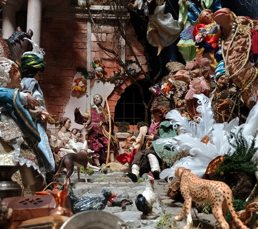 Ogni figura è frutto di uno studio attento dei presepi napoletani, senza trascurare riferimenti alla storia locale: dalle portantine minuziosamente ricostruite fino al Doge genovese con servitori in livrea, un omaggio al passato ligure. Complessivamente, il presepe conta 120 personaggi, dal vecchio abitante del carruggio fino alla Sacra Famiglia.
