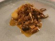 “Bieletti” di stoccafisso con cialda all’acqua di cottura dei fagioli di Pigna