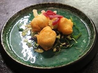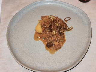 Una preparazione che gioca sul contrasto tra consistenze e sapori. Il baccalà, croccante all’esterno e morbido all’interno, incontra l’agrodolce mediterraneo in un equilibrio elegante e misurato, capace di valorizzare la struttura del pesce.