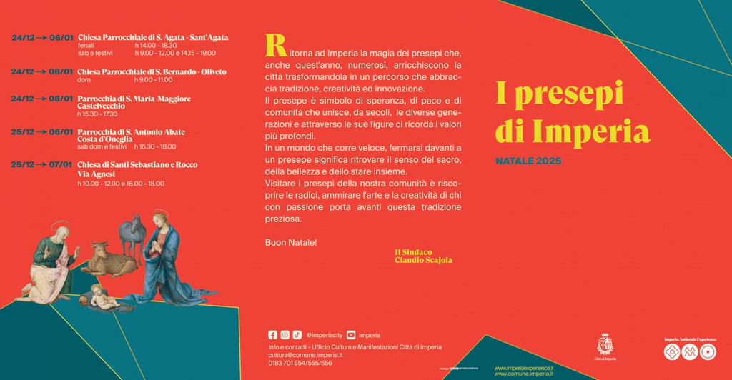Il Natale a Imperia si accende di luce, arte e devozione grazie a un percorso tra i presepi allestiti nei luoghi più suggestivi della città e dell’entroterra. Tra opere classiche e interpretazioni originali, i visitatori e i residenti sono invitati a scoprire un itinerario natalizio che affianca spiritualità, artigianato e memoria collettiva.