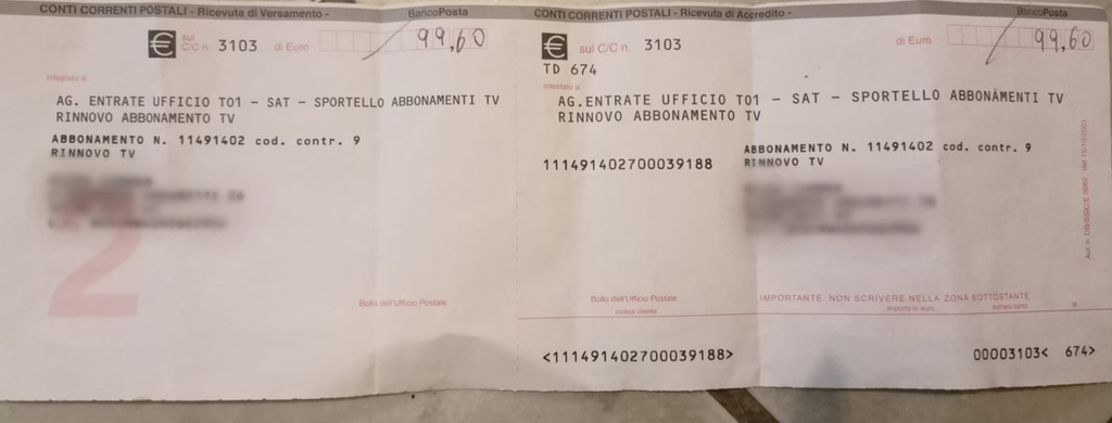 Succede di trovarsi nella cassetta delle lettere un bollettino, senza alcuna lettera di accompagnamento, intestato all’Agenzia delle Entrate, con un conto corrente che fa capo alla Rai. Sul foglio, una cifra di poco inferiore a 100 euro è scritta a mano, apparentemente riferita al rinnovo dell’abbonamento del canone televisivo. Sul retro, numeri di cellulare scritti a mano e persino una casella email collegata all’interessato, con una password fantomatica.