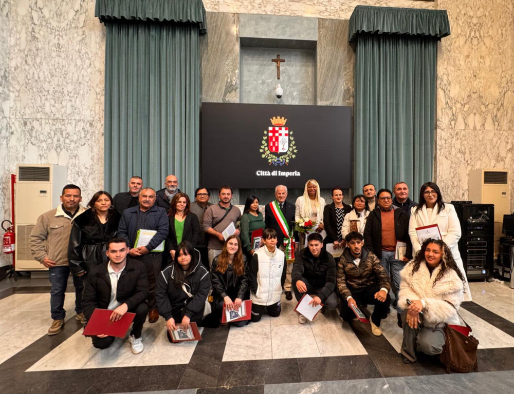 Questa mattina, nella Sala Consiliare di Palazzo Civico, si è svolta la cerimonia di giuramento per 24 neo cittadini italiani che hanno scelto Imperia nuova casa. I nuovi cittadini provengono da diverse parti del mondo, tra cui Perù, Turchia, Nigeria, Albania, Tunisia, Cina e Marocco.