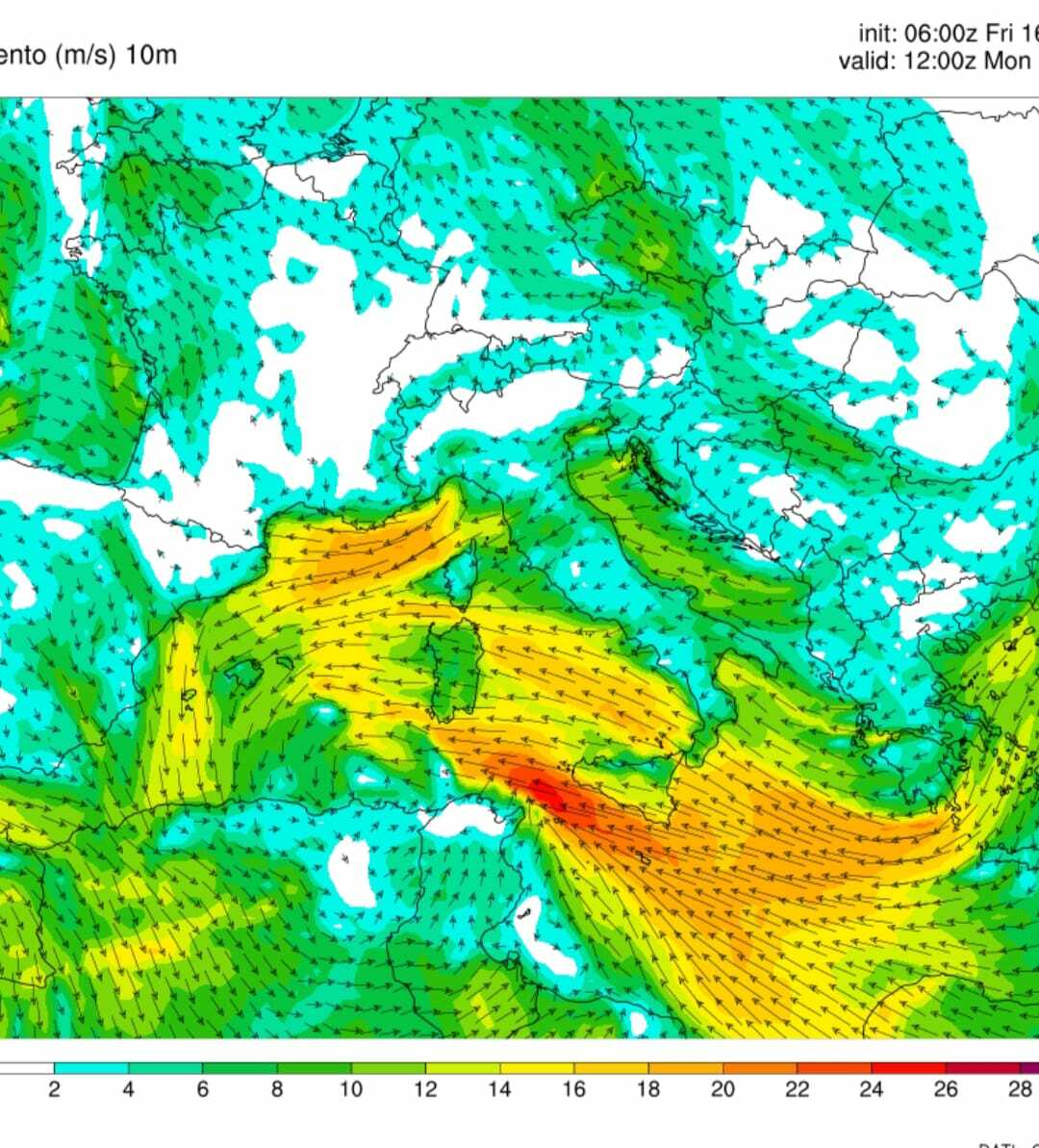 (Ore 12:00 di lunedì 19. Fortissimi venti investiranno le Isole. Situazione da attenzionare, anche davanti all' Imperiese (possibili raffiche in estensione al profilo costiero, intorno ai 75 km/h)