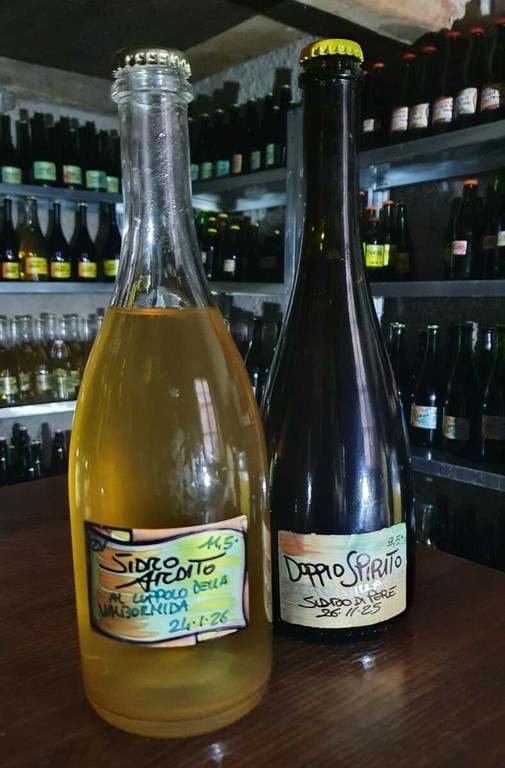 Il laboratorio di Maurizio è piccolo, quasi casalingo, ricavato da alcuni locali abbandonati, e ogni fase della produzione richiede dedizione e pazienza. Qui nascono litri di sidro, birre artigianali e idromele, ognuno con la propria storia e il proprio carattere. Ha realizzato circa sessanta produzioni di sidro, tutte nate dal territorio e legate a un gesto semplice: raccogliere il frutto dimenticato.