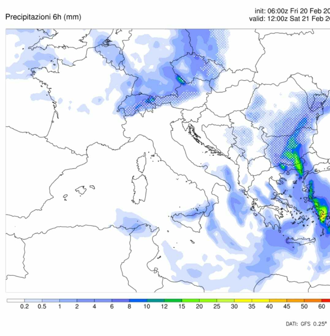 (La mappa relativa a sabato 21 febbraio secondo il modello americano GFS, che ancora non vede peggioramenti in arrivo, da rivalutare alla luce di altri modelli)