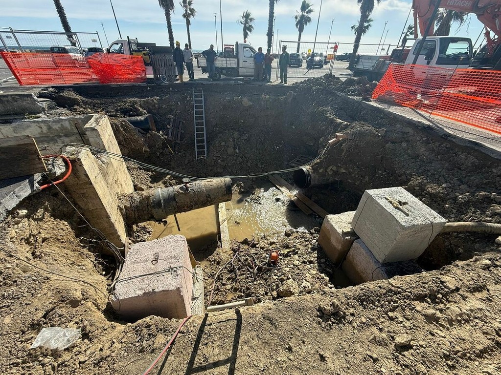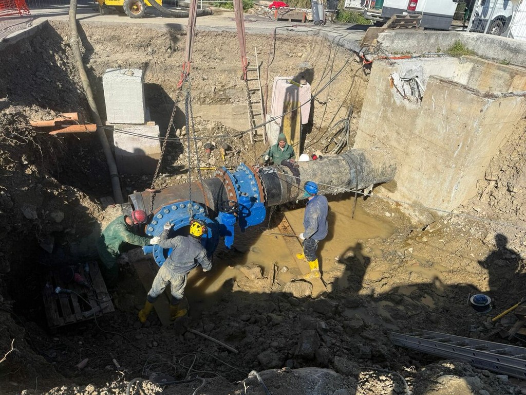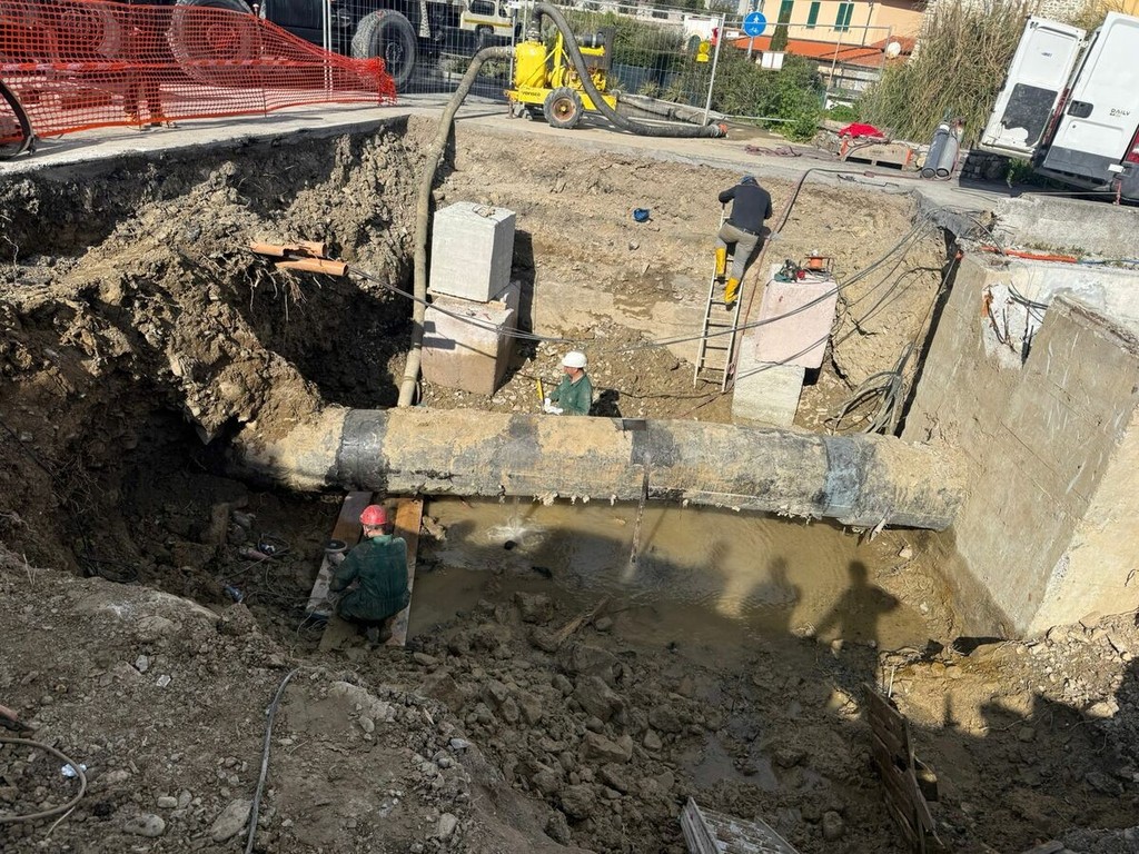La falla di circa 60 centimetri è stata definitivamente messa in sicurezza grazie all’applicazione di una “cravatta” lunga 2 metri, che ha permesso di contenere la perdita e ripristinare il normale flusso idrico. L’operazione è stata realizzata sfruttando una breve finestra di calma meteomarina e con l’intervento di sommozzatori specializzati, che hanno operato a profondità comprese tra 15 e 20 metri per l’intera giornata.