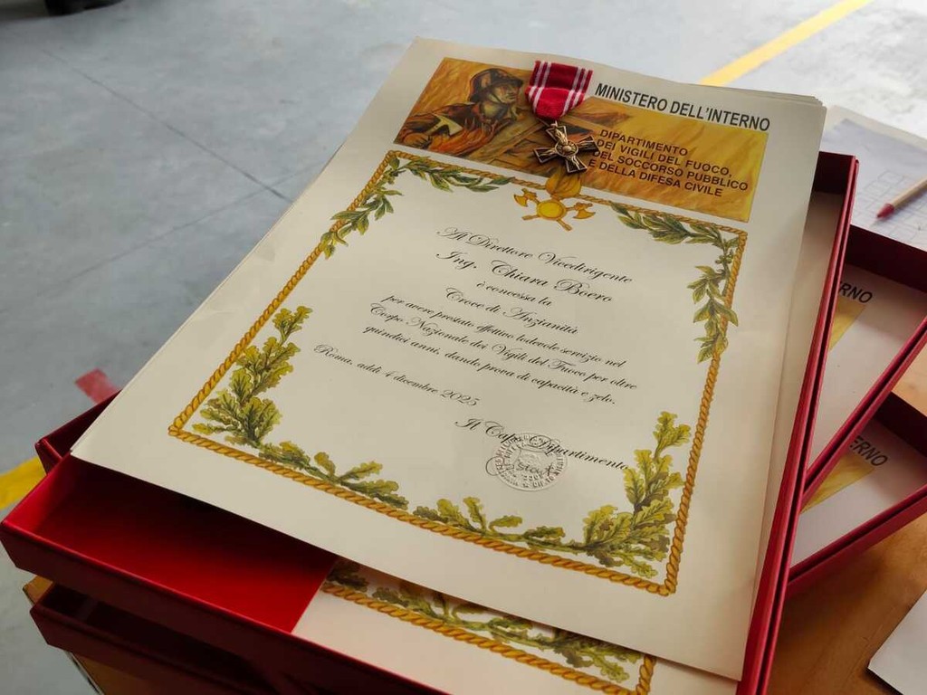 La celebrazione si è conclusa con la consegna delle benemerenze. Il prefetto Antonio Giaccari ha conferito le croci di anzianità a Chiara Boero, Federico Amoretti, Manuel Maffone, Alessandro Montali, Alberto Rebuttato e Stefano Zagatti.