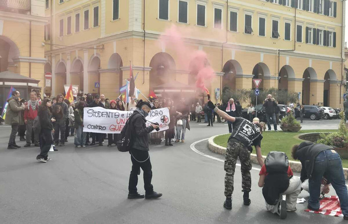 "Studenti e lavoratori uniti contro guerra e riarmo". Una cinquantina di manifestanti è scesa in piazza questa mattina a Oneglia per un corteo contro la guerra e contro i piani di riarmo nazionali ed europei. La manifestazione, promossa dai collettivi giovanili e studenteschi Spiraglio Imperiese e Ingauno, è partita da piazza Ulisse Calvi e si è conclusa in piazza Dante.