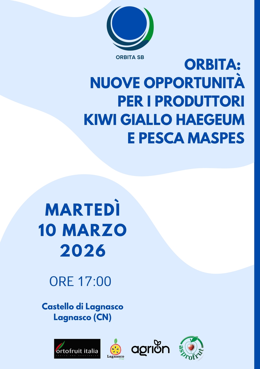 Nuove opportunità per i produttori piemontesi, innovazione varietale e strategie per rilanciare due colture simbolo della frutticoltura regionale. Sono questi i temi al centro dell’incontro “Orbita: nuove opportunità per i produttori – kiwi giallo HAEGEUM e pesca MASPES”, in programma martedì 10 marzo, alle ore 17, al Castello di Lagnasco, nel cuore di uno dei territori più rappresentativi della frutticoltura piemontese.