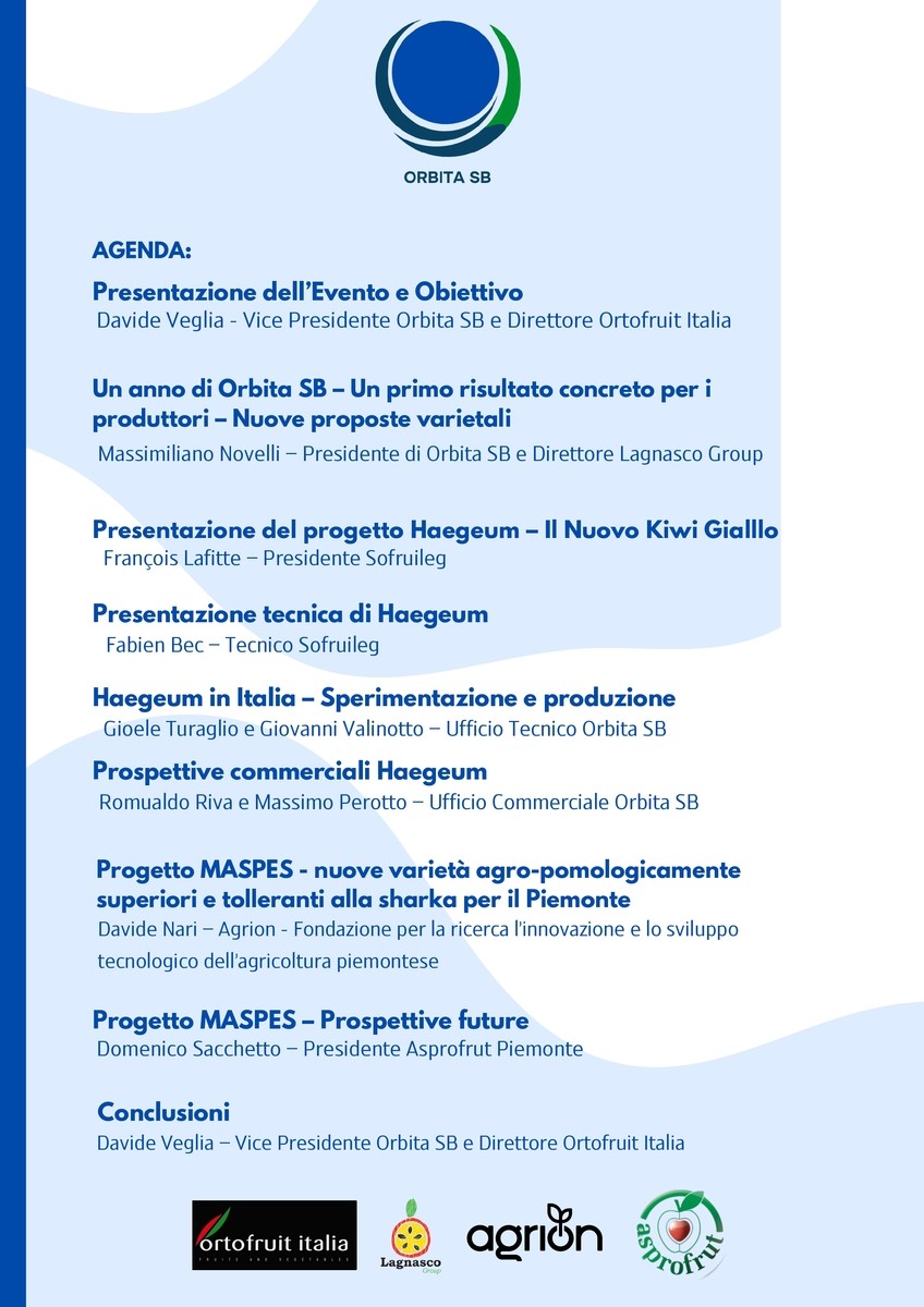 L’evento rappresenta anche un momento simbolico: il primo anniversario della nascita di Orbita SB, il progetto che ha unito competenze, strutture e visione strategica di Lagnasco Group e Ortofruit Italia, creando una nuova piattaforma di collaborazione tra organizzazioni di produttori, tecnici, centri di ricerca e altri stakeholder del territorio.