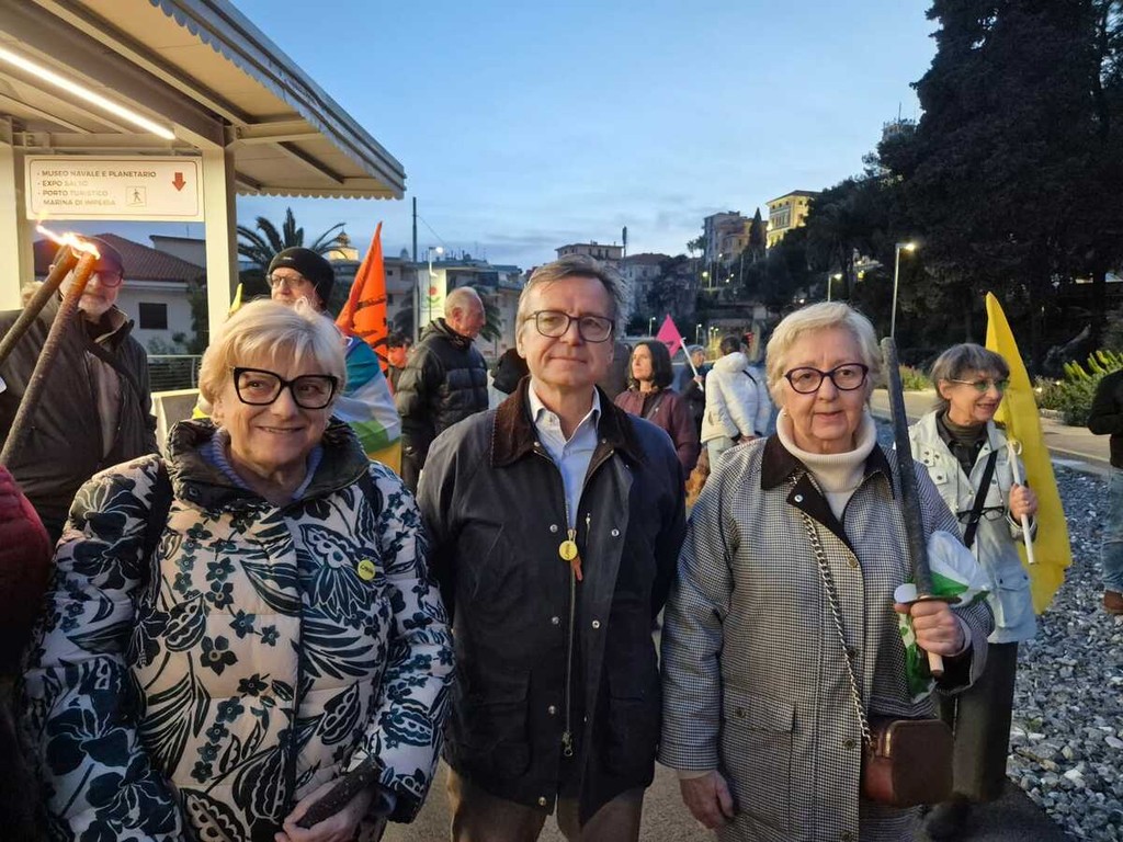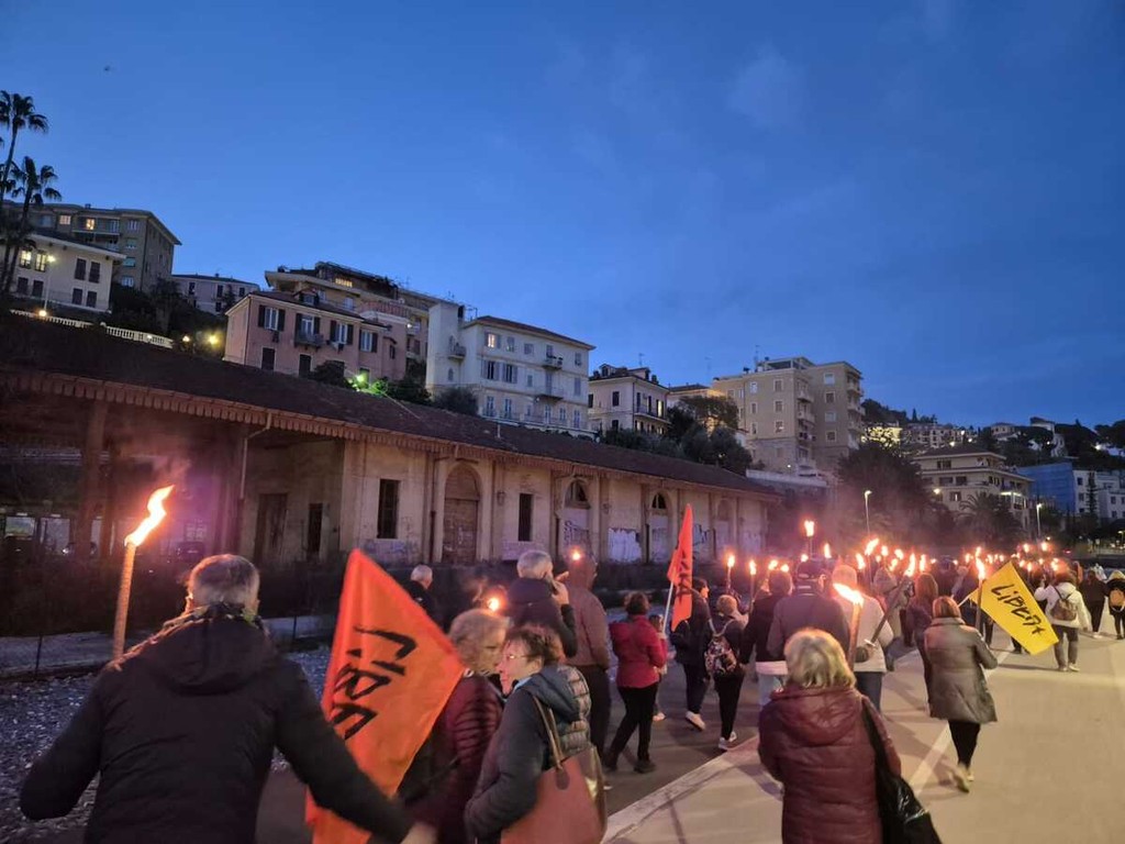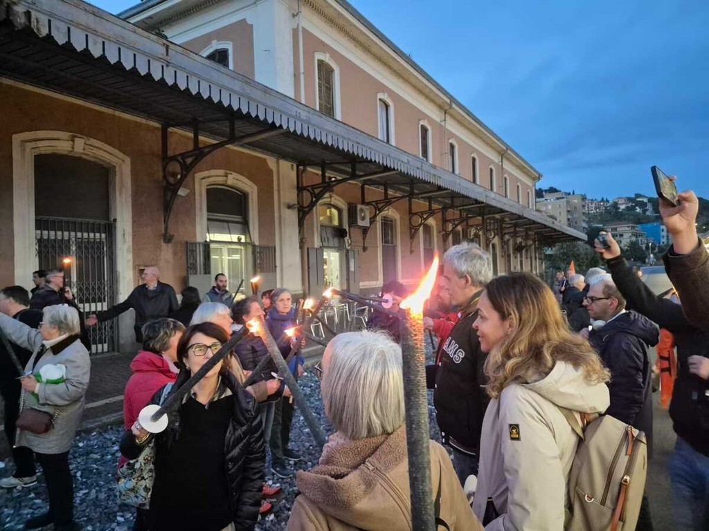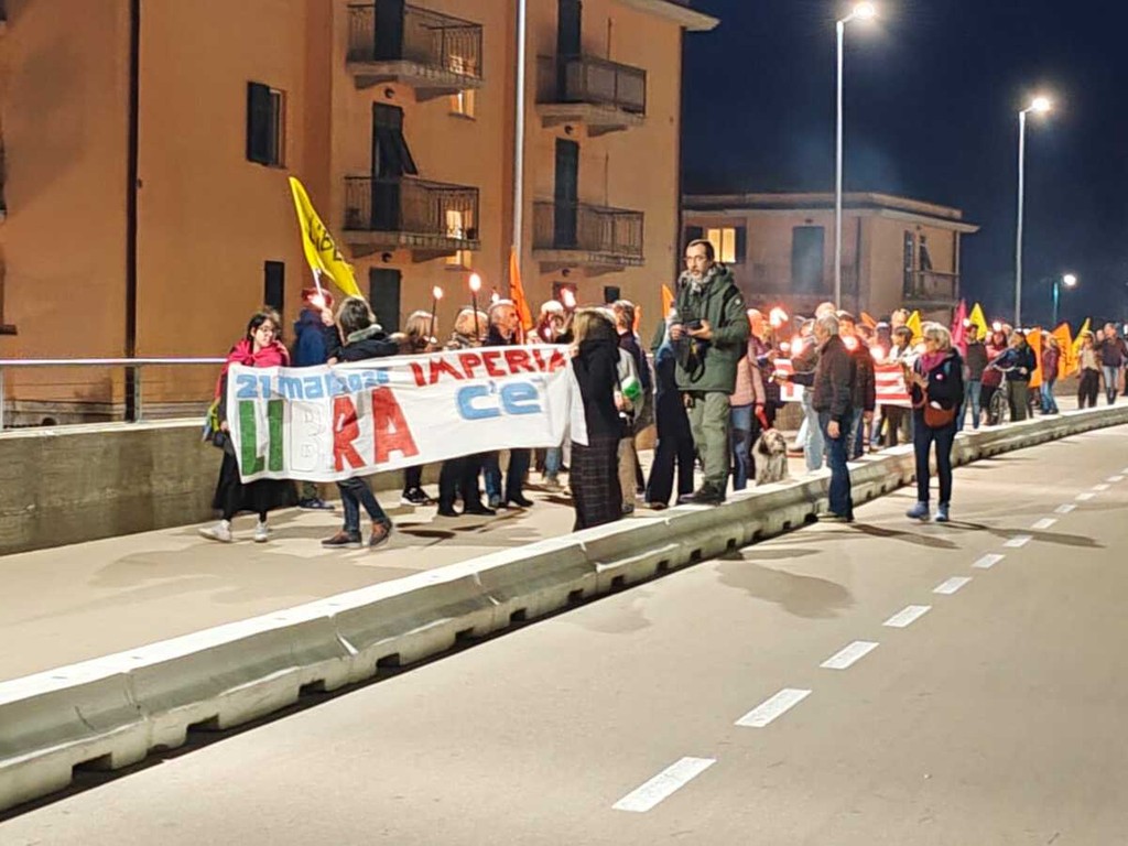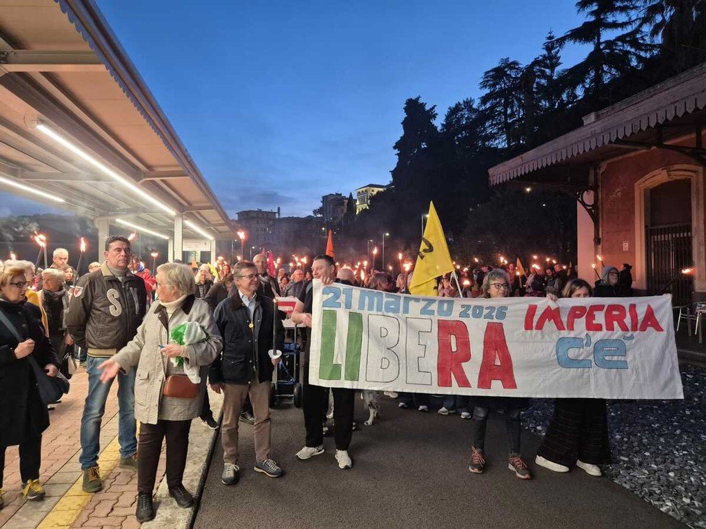 Una scia di luce ha percorso la pista ciclabile dall'ex stazione di Porto Maurizio e quella di Oneglia, in un simbolico cammino di memoria e impegno civile. La fiaccolata “100 passi verso il 21 marzo”, organizzata dall’associazione Libera, ha visto la partecipazione di circa 250 persone tra cittadini, associazioni e rappresentanti delle istituzioni locali. Erano presenti il procuratore della Repubblica Alberto Lari, la Prefettura ed esponenti del Partito Democratico, di Alleanza Verdi e Sinistra e di Rifondazione Comunista.