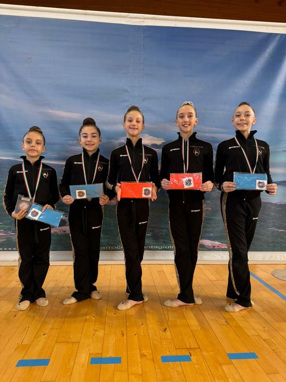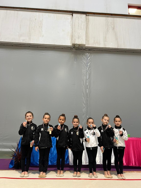 Nella categoria Allieve 5, Emma Lucifredi ha ottenuto un quinto posto, seguita da Ginevra Longo, sesta. Esordio positivo anche per Alessandra Rossi e Beatrice Scajola nella Silver LE Junior 1, alla loro prima esperienza in campionato. Grande soddisfazione arriva dalla categoria Senior 1 del campionato Silver LD, dove Emma Sant’Angelo ha conquistato il primo posto grazie a un esercizio impeccabile. Buone anche le prestazioni di Matilde Puleo e Melania Fioroni, rimaste ai piedi del podio. Spazio infine alle più piccole, impegnate nel torneo non competitivo Gym Flowers: per molte si è trattato della prima esperienza in pedana, affrontata con entusiasmo e buoni risultati.