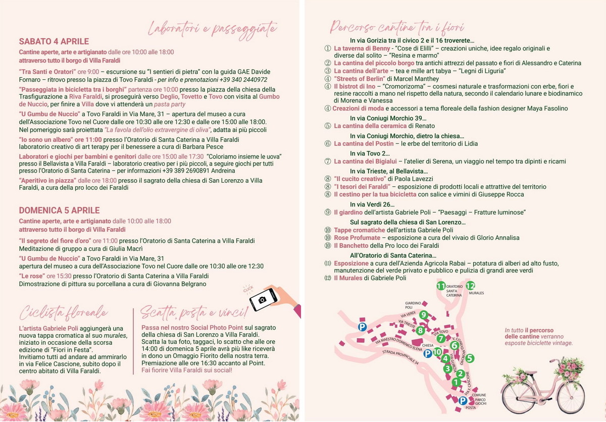 10.00-18.00. ‘Fiori in Festa’ a Villa Faraldi (11ª edizione): due giorni tra arte, natura e tradizioni con cantine aperte, arte e artigianato, passeggiate in bici, aperitivi e benessere. Luoghi vari, anche domani (il programma)