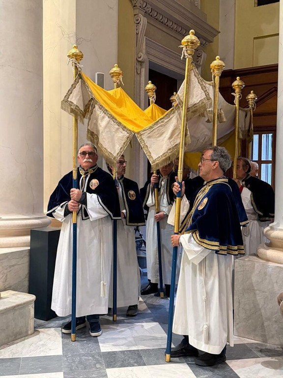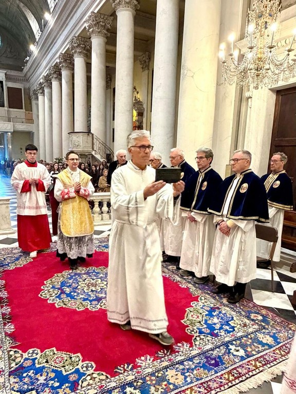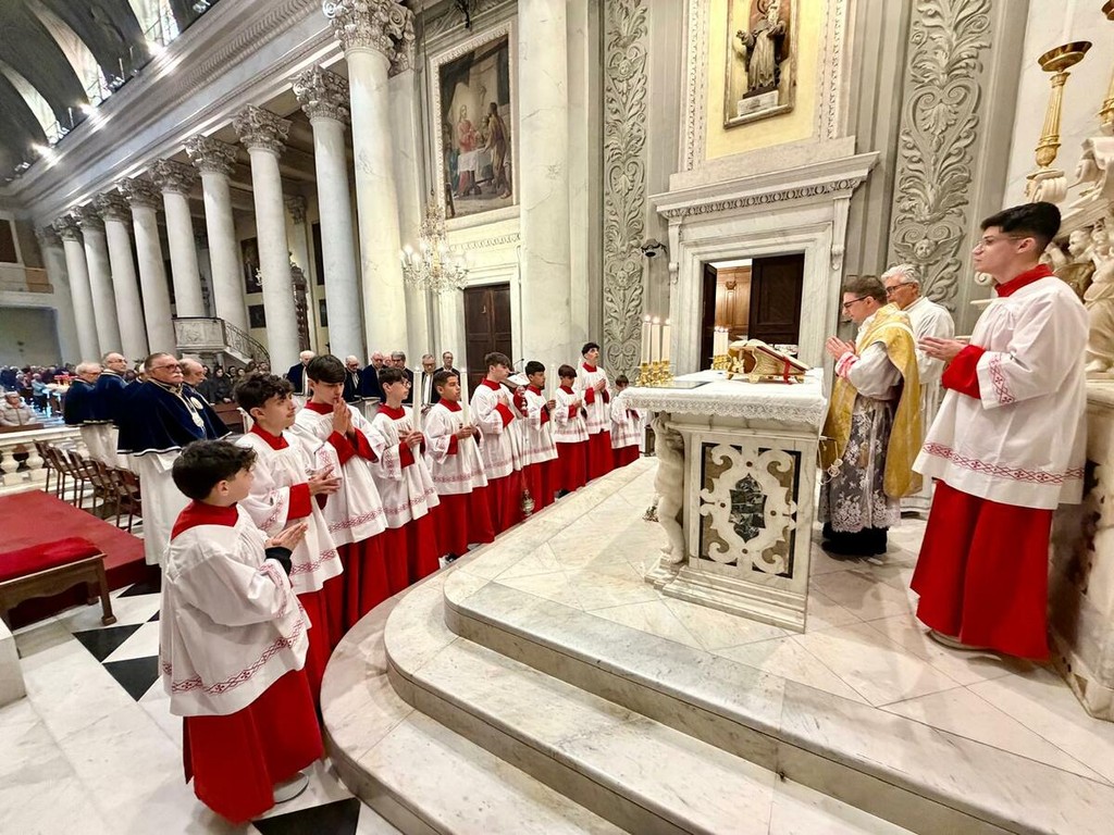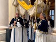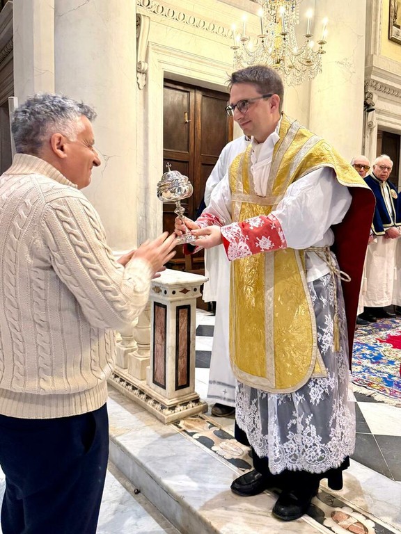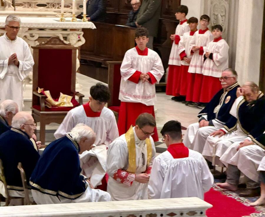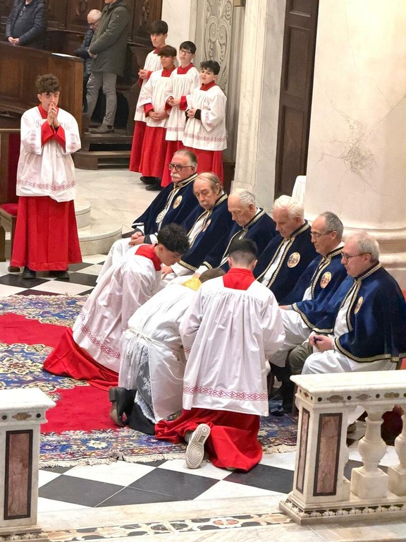 Momento particolarmente significativo è stato quello della lavanda dei piedi. Il parroco, don Luca Gabriel, ha rinnovato il gesto compiuto da Cristo sugli Apostoli, coinvolgendo dodici membri della Confraternita della Santissima Annunziata, con il supporto dei ministranti. Nell’omelia, il sacerdote ha richiamato il significato profondo di questo segno, sottolineando come in esso si esprima un amore totale e gratuito, capace di rispondere al bisogno più profondo dell’uomo e di trasformare la vita in dono.