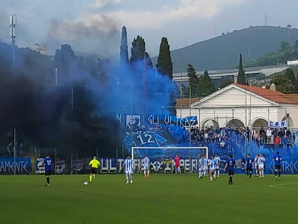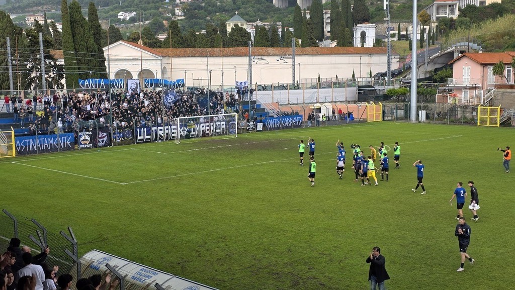 Finisce il match dopo 4 minuti di recupero. La Sanremese nel finale prova timidamente a trovare la rete della rimonta totale ma senza successo. L'Imperia in 10 porta a casa un punto prezioso