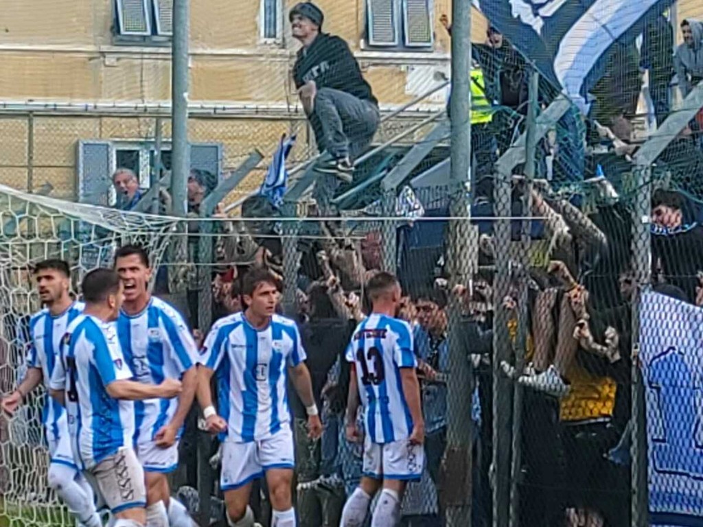 6'Imperia in vantaggio! doppio corner e sul secondo angolo, sponda per Viti che svetta in mezzo alle tante teste biancazzurronere e insacca battendo Licata