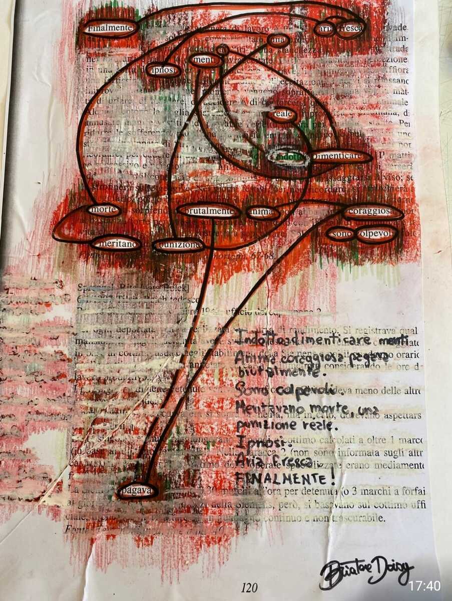 Il metodo adottato durante il workshop si ispira alla celebre tecnica della “cancellatura”, ideata da Emilio Isgrò, artista concettuale di fama internazionale: attraverso questo processo, gli studenti sono stati chiamati a intervenire su testi preesistenti, eliminando parole e porzioni di testo per far emergere nuovi componimenti poetici e significati più profondi, in un esercizio che unisce rigore formale e libertà espressiva. Il progetto, coordinato dai docenti di discipline pittoriche, la professoressa Laura Comollo e il professor Angelo Ardissone, si è articolato in una sessione intensiva di sei ore e ha perseguito diversi obiettivi: apprendimento tecnico, attraverso la sperimentazione dell’integrazione tra parola e immagine; espressione emotiva, per dare forma artistica ai sentimenti emersi dallo studio del Secondo conflitto mondiale; riflessione critica, volta a rielaborare i temi della deportazione e del genocidio mediante un linguaggio visivo incisivo. L’attivazione emotiva degli studenti è stata preparata da un solido percorso curricolare di Storia, arricchito dalla lettura di testi specifici, distribuiti e approfonditi anche durante l’incontro.