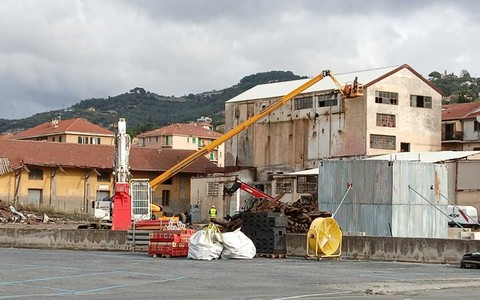 Imperia, inizia la demolizione dei silos dell’ex mangimificio Moreno-Carrettieri-Gandolfo (video)