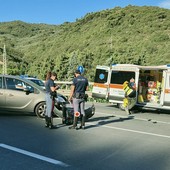 Incidente tra auto e moto in via Nazionale, ferito grave al Santa Corona in elicottero (foto)